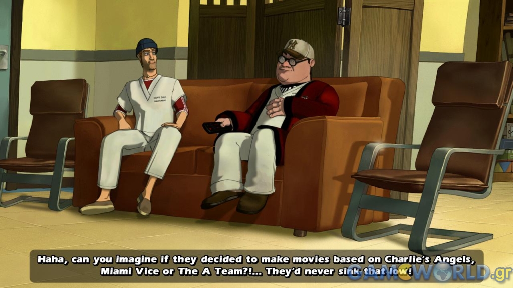 Το τρελάδικο έχει τους πολιτικοποιημένους τροφίμούς του όπως ο Quickle που, ότι και να τον ρωτήσετε, αρχίζει να εξαπολύει κατάρες προς το καπιταλιστικό σύστημα και τα αφεντικά. Θα μπορούσε άνετα να γίνει βουλευτής του… ΚΚΕ! Απίστευτη αφασία διαθέτει επίσης ένας φαφούτης γέρος 100 ετών που έχει μετατρέψει ένα τραπέζι πινγκ-πονγκ σε αμάξι. Το κερασάκι στην τούρτα αποτελεί ο Dr.Reset, ένας αποβλακωμένος τύπος που, μετά από λίγη ώρα συνομιλίας, αρχίζει να τα χάνει και ξεχνά τα πάντα, ξεκινώντας πάλι από την αρχή (εξού και το όνομα του)!