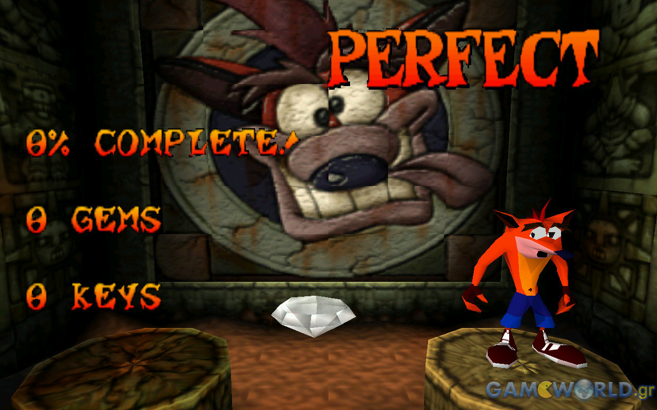 Υπάρχουν 25 levels με τα αντίστοιχα διαμάντια για την άψογη ολοκλήρωσή τους καθώς και 2 κρυφά κλειδιά για levels που μπορείτε να βρείτε μόνο ολοκληρώνοντας τα δύσκολα bonus rounds του Cortex. Επίσης οι πίστες του έχουν πολλά κρυφά σημεία όπου κρύβονται κιβώτια και θα πρέπει να πειραματίζεστε συνεχώς για να τα ανακαλύπτετε. Τέλος, καθώς το Crash Bandicoot δημιουργήθηκε σε μια εποχή που δεν ήταν πολύ διαδεδομένες οι memory cards, σώζει με έναν περίεργο τρόπο μόνο αν τελειώσετε ένα bonus round ή αν κερδίσετε κάποιο διαμάντι για να πάρετε ποσοστό % ολοκλήρωσης. Αν δεν έχετε memory card τότε χρησιμοποιείτε κωδικούς τους οποίους και θα πρέπει να σημειώσετε κάθε φορά.