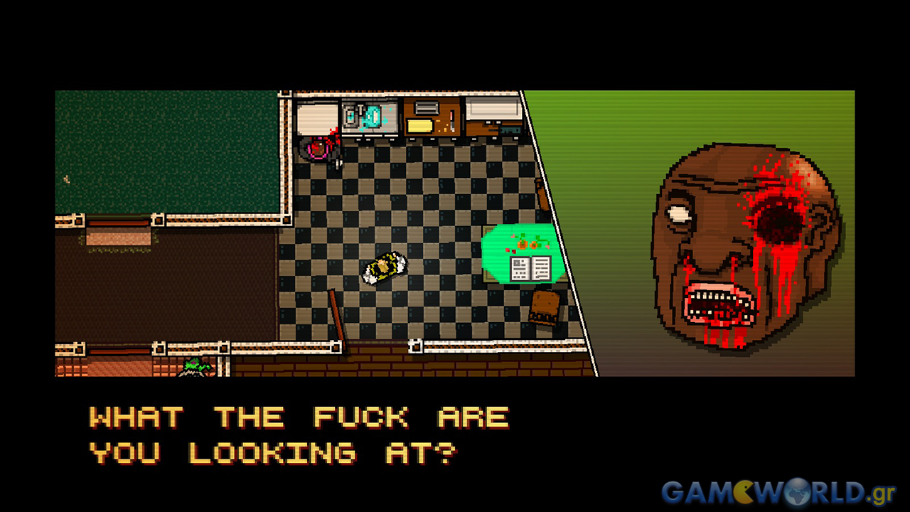 Και πάμε στον πιο ιδιόρρυθμο τομέα του Hotline Miami, που είναι ο οπτικός. Το δίδυμο της Dennaton Games δούλεψε με το GameMaker: Studio για την δημιουργία του τίτλου της και το γεγονός ότι κατάφεραν να "χτίσουν" ένα τόσο εθιστικό game με μια εφαρμογή που στην απλή της μορφή είναι drag-and-drop λογικής για αρχάριους δίνει ελπίδα σε όλους μας! Ωστόσο, οι τεχνικοί περιορισμοί είναι δεδομένοι και το αποτέλεσμα είναι απαρχαιωμένα, "πιξελιασμένα" γραφικά εξαιρετικά χαμηλής ανάλυσης που θα είχε όντως παιχνίδι του 1989!