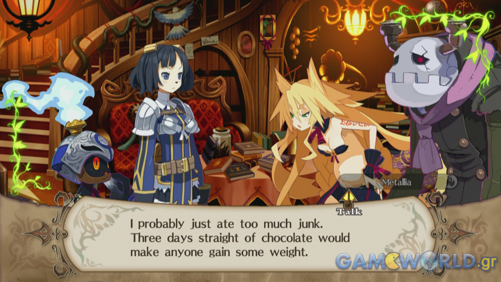 Σε γενικές γραμμές το σενάριο δεν καταφέρνει να εντυπωσιάσει και το γεγονός αυτό οφείλεται κατά κύριο λόγο στην απόδοση των χαρακτήρων. Η Metallia είναι διαβολική μέχρι το μεδούλι και παρά τις χιουμοριστικές ατάκες της, το πιο πιθανό είναι ότι θα την αντιπαθήσετε. Βέβαια είτε την συμπαθείτε ή όχι θα πρέπει να κάνετε ακριβώς ότι σας λέει και το στοιχείο αυτό είναι σίγουρα αρνητικό, αφού σας στερείται η στοιχειώδη ελευθερία που οφείλει να έχει ο χαρακτήρας σας σε ένα RPG.