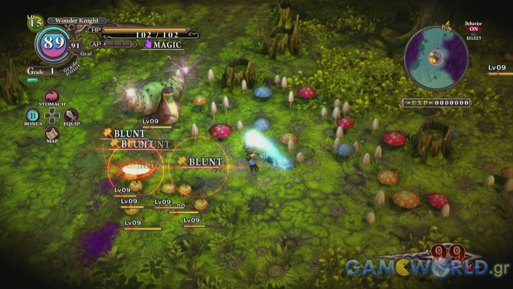 Ενώ λοιπόν το σύστημα μάχης είναι λιτό και προσβάσιμο ακόμη και στους αρχάριους των Action RPG, το user interface δεν είναι καθόλου λειτουργικό. Ενδεικτικά να αναφέρουμε ότι καταλαμβάνει την μισή σας οθόνη βομβαρδίζοντας σας με δεκάδες πληροφορίες, τις οποίες θα χρειαστεί να αφιερώσετε αρκετό χρόνο για να αφομοιώσετε. Πέρα λοιπόν από την τυπική health bar, συναντάμε το minimap, μία AP bar (για τα skills σας), τον μετρητή GigaCal, την ένδειξη για το facet που χρησιμοποιείτε (τα classes του The Witch and the Hundred Knight) και την Grade bar. Αυτές είναι μόνο οι βασικές ενδείξεις, καθώς πέρα από αυτές συναντάμε αρκετές ακόμη μικρότερης σημασίας που δείχνουν το level σας, τα bonus αντικείμενα σας κ.ο.κ.